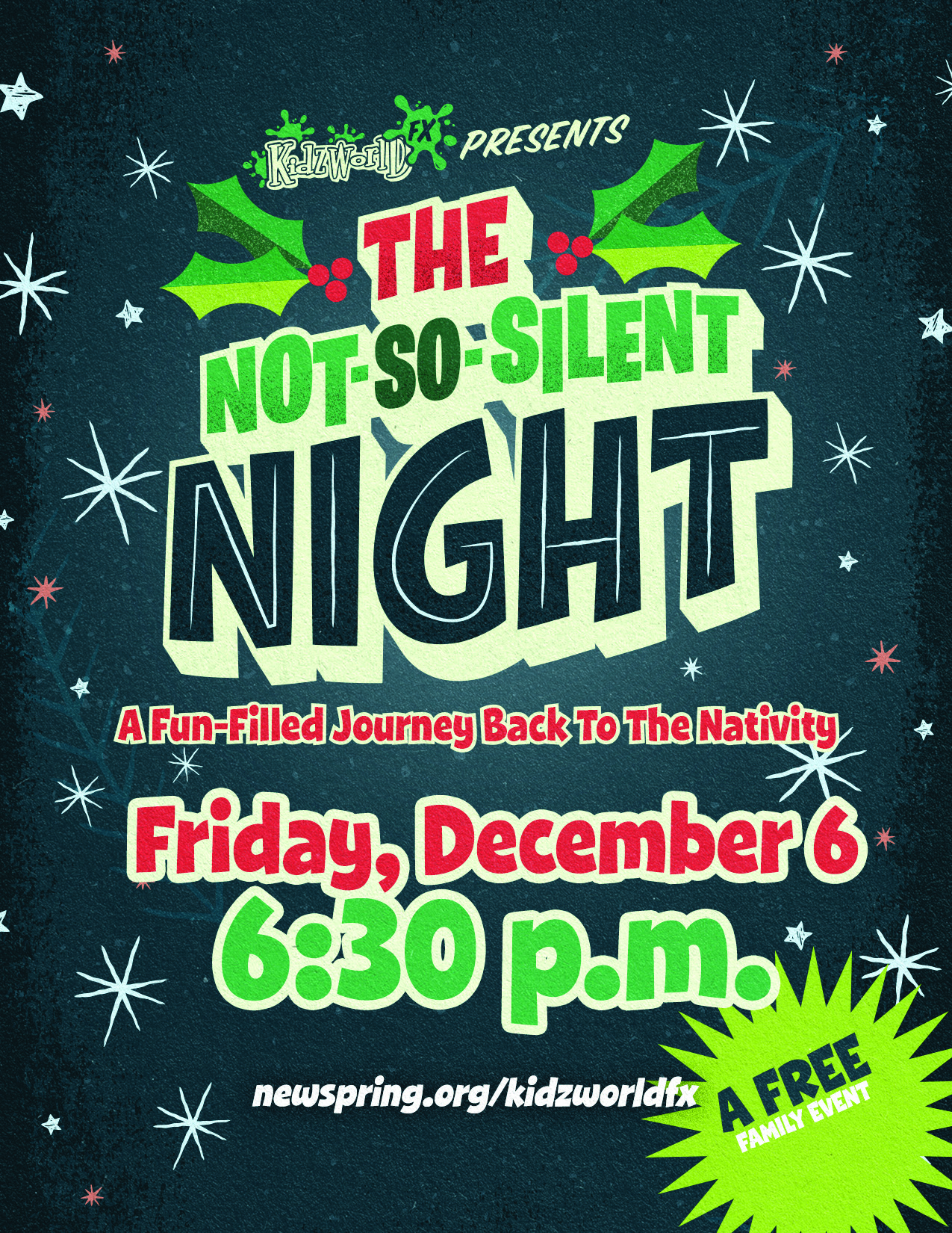 Join us in person or online for this free, fun family event! Find out more at newspring.org/kidzworldfx.