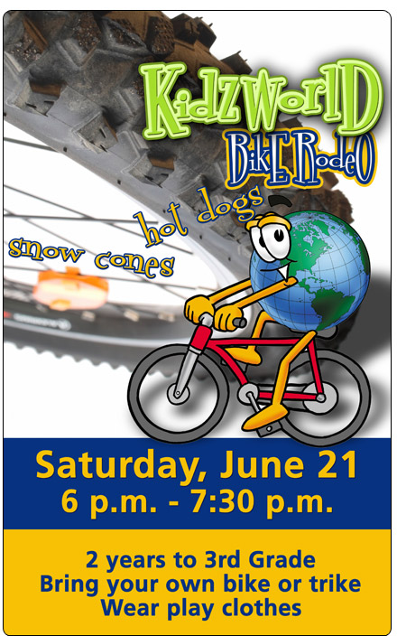Coming up June 21 at 6 p.m. we will have a Bike Rodeo that will only happen on Saturday. Bring your bike or trike and we are going to have a blast. This is also a great time to invite someone who doesn’t go to church.